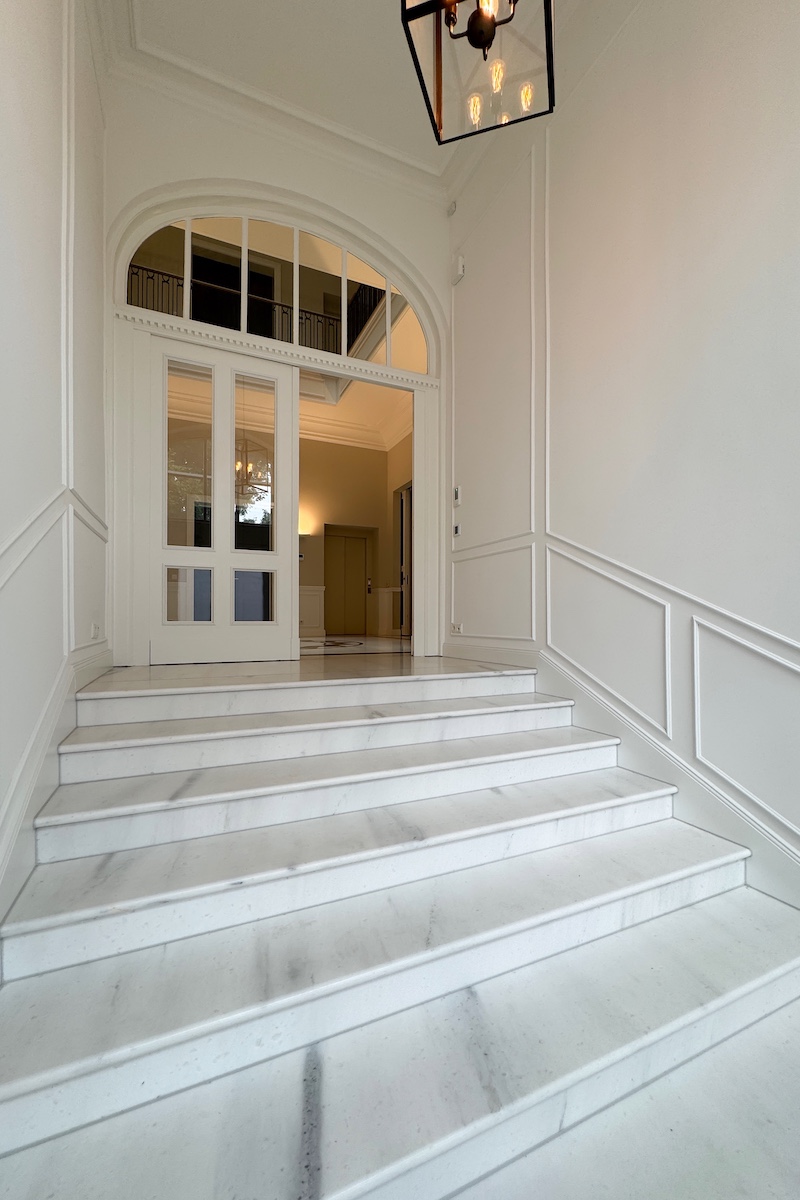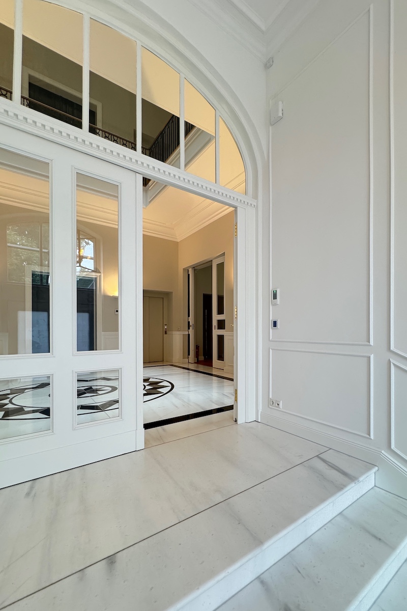 Als das Objekt mit dem Baujahr 1890/91 an mich heran getragen wurde war schnell klar, dass die bereits vorhandene unglaublich detailverliebte klassische Formensprache gewahrt werden muss. Die Erneuerung von Wandprofilen, Deckenstuckaturen, Profiltüren und Bodenbelägen ist dabei dem Original gefolgt. Die Kombination mit einem modernen aber zurückhaltenden Lichtkonzept und neuen Bädern in schlichter gemütlicher Atmosphäre haben dieser Villa u.a. wieder neues Leben eingehaucht.